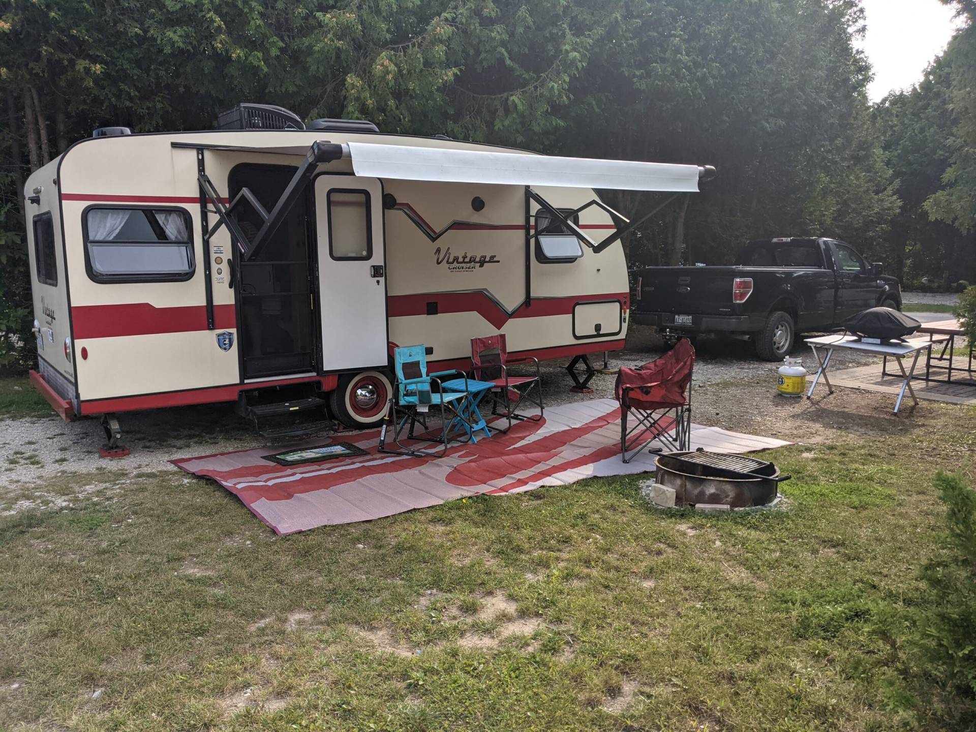 OK problem sort of solved. How do you become mobile if you cant pull the trailer and you don’t want to have to buy a new truck? That’s when we remembered the 19 foot retro-travel trailer we had seen at the dealership! Enter “The Baby”. Not only can the truck tow it , it’s cute! Problem 2 solved!