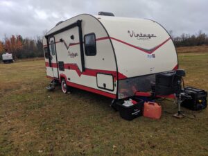 Driving by the RV dealer’s lot I noticed some vintage style trailers. Pattie and I went over to the shop and looked at all the models and opinions. In the end we settled on a 19′ model. So enter “The Baby” .