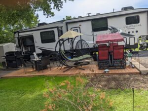 We had purchased a large 5th wheel trailer and were happily ensconced in it at our seasonal site. This was going to be our base of operation for half the year. The rest of the year was to be spent travelling the highways and byways of North America.